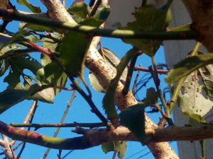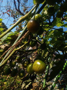 トスカーナバイオレットの実がどんどん膨れて来ています。夏よりも大きく育っていますね。ある房は13個も身を着けていました。無頓着に摘んで食べてしまったかも知れません。