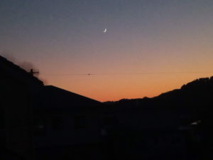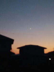 新月が終わり、細い、細い三日月様が写っています。
