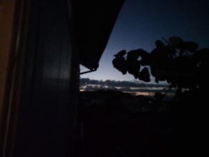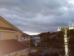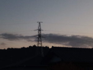 19時6分ごろ、茨城県沖を震源とする地震がM5.8の地震が発生しました。横揺れが長い事続きました。最大震度は5強だったようで、影響を受けた県は17県に及びます。震源地は36.6N、141.1Eで、最大震度5強、深度は40㎞でした。この町の震度は1でした。予兆写真と思われるものは全て昨日の物です。かなり北なので、東北東―北東に雲が出ます。
