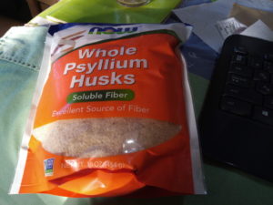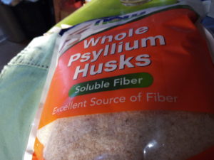 サイリウムハスク(オオバコの種殻らしい)は大匙1―2杯で12オンス(約500ml)の水に溶かして使用する様です。勿論、一日中たっぷりの水を摂取する事、と注意書きがありました。それだけ水を含むんですね。