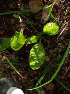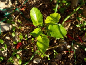 (中)サラダミックスとか言う処から出て来た苗です。何でしょうね。ギザギザの葉の苗…見た事がない苗です。