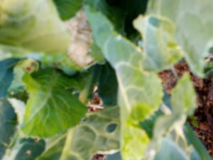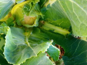 葉はボロボロですが、カリフラワー白が顔を出して来ました。
