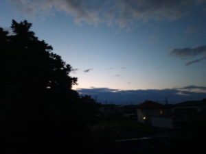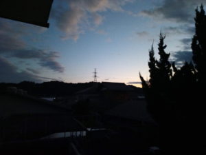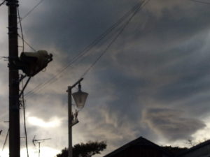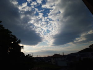 買い物に出掛けた時はこんなに青空だったのに、どんどん黒くもが広がって…。