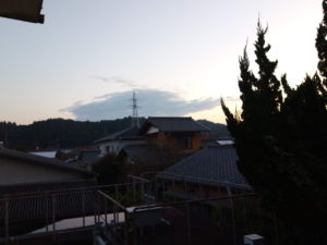 5時50分、東北東に収束する雲が見えます。我が家から真東にある浅間山の烏が騒いでいました。