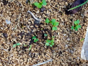 いつものラディッシュ・ジュエルレッドとレタスのナーサリーです。アップすると、グルノーブルレッド(日本で言うサニーレタス)かな、色が着き始めましたよ。