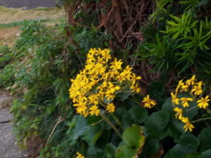 冬薔薇(ふゆそうび)とつわぶきの花。