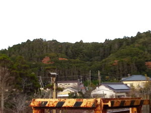 浪花方面の低い山ですが、中腹に枯れ木が目立ちます。そして同じ高さの何本か見えるのが気になります。今まであった水脈が切れた?