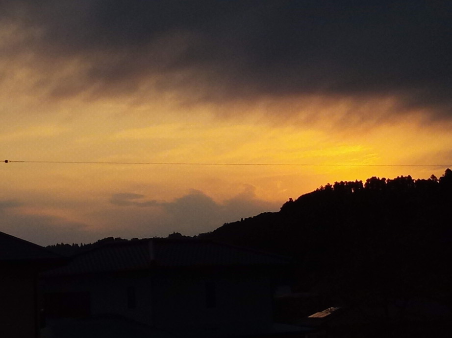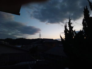 買い物に出掛けた時はこんなに青空だったのに、どんどん黒くもが広がって…。