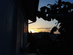 6時49分、まさか物干しから上る太陽を撮るとは!?今朝の日出は6時26分、日没は16時28分。