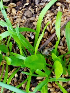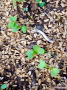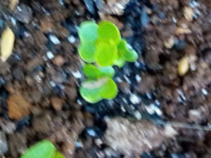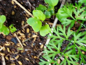 (中)ホウレンソウには本葉が出て来ました。洋種のホウレンソウですね。種はWさんから頂きました。