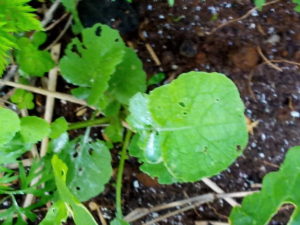 大根の蔭で育つラディッシュよりも何故か二畝の端で育つラディッシュの方が時期も違うせいか、虫害が圧倒的に少ないです。多分、品種ではなく、時期の問題でしょう。