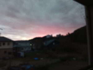 16時26分の夕焼けです。右はそのアップで、肉眼で見た色に近いです。。