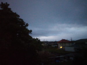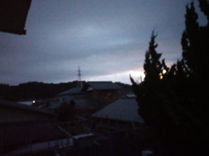 6時15分の空は暗いです。会社勤めの人達の車が真っ暗な中で強いライトを発して出て行きました。