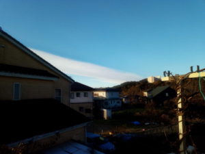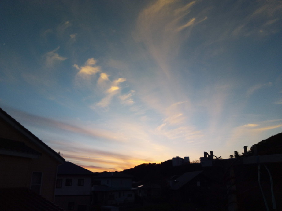 16時04分、買い物の帰りの夕焼け。雲はやはり西南西から出ていますね。。