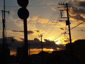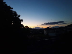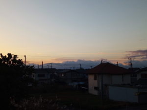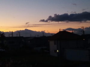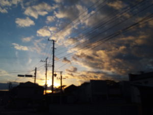 15日の日没前、太陽が沈むのはもう少し左なのに、面白い場所でまるで炎が上がっている様に見えたので撮りました。