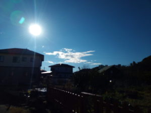 2時23分に青森県東方沖地震M6.5、最大震度5弱、深度40㎞の地震が発生しました。深度が40㎞ですが、影響は17都道県に及びました。私も何だかわからずに目が覚めました。震源地は海底で40.8N、142.7Eでそんなに遠くの予兆が出るかどうかは分かりませんが、北東―東北東の写真を上げてみます。