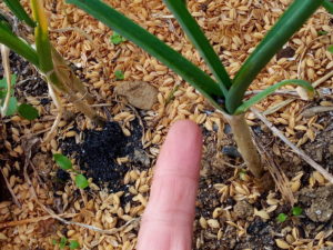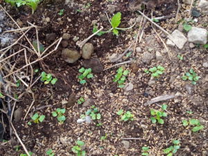 大きな双葉がとても伸び伸びとしていましたね。点蒔きで一穴に3-4粒ずつ蒔いて居ます。