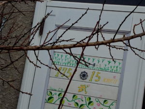 10時44分、東北東に釈が出ました。我が家の実梅の蕾です。右は鹿児島紅の枝と蕾です。。