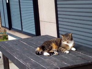 ちゅ~るタイムで声を掛けると3匹がゾクゾクとやって来ました。うめは『オカアシャンと一緒に行く~』、一番理解出来ない顔をしていたトラ子もサッサと物干しからやって来て、僕はまだいいよ、と言わんばかりの福が一番最後に来てペロリ!と食べました。