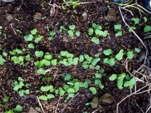 大きな双葉がとても伸び伸びとしていましたね。点蒔きで一穴に3-4粒ずつ蒔いて居ます。