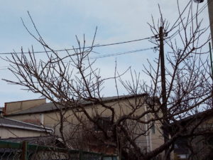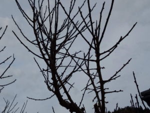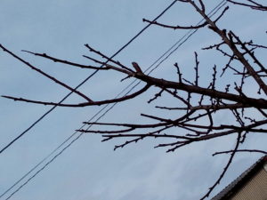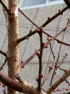 10時44分、東北東に釈が出ました。我が家の実梅の蕾です。右は鹿児島紅の枝と蕾です。。