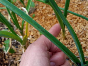 玉葱は未だ割り箸1本分の太さよりちょっと細いです。此方は大蒜です。。