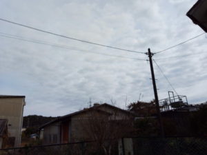 6時46分、東の空に雲はありません。(右)南東に出ている雲は西南西まで繋がります。