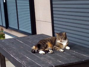 ちゅ~るタイムで声を掛けると3匹がゾクゾクとやって来ました。うめは『オカアシャンと一緒に行く~』、一番理解出来ない顔をしていたトラ子もサッサと物干しからやって来て、僕はまだいいよ、と言わんばかりの福が一番最後に来てペロリ!と食べました。