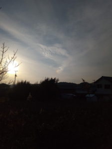 16時6分、日が山の向うに行きました。16時36分が日没です。6時47分が日の出です。