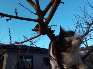 癖はあるけれど、可愛い処もある福の写真を撮ろうと、梅の樹に上らせたけれど、シャッターチャンスがとれずに不細工写真ばかりでした。