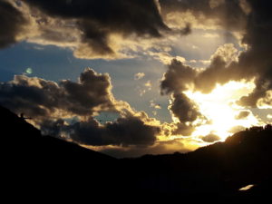 14時57分の青空。右、16時2分の黄金色の太陽。