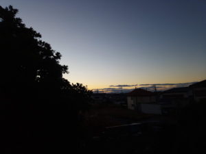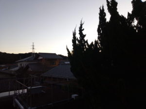 6時40分の空は緊張気味です。左から東北東、南東、西南西になります。