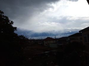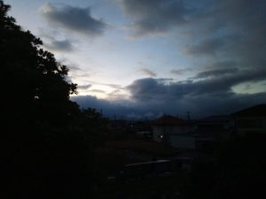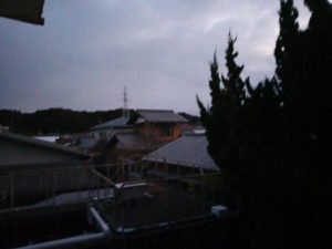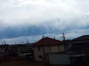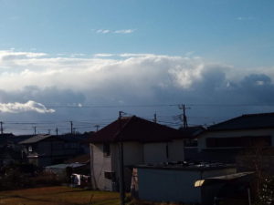 右: あれが雪雲なのかなぁ。8時22分。降りませんでしたね。