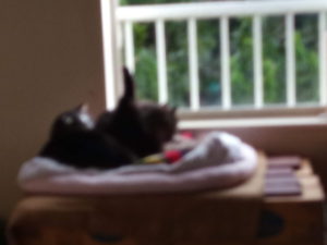 少しボケたので、近寄って撮りました。福は温かいトラ子にくっつかれてまんざらでもなさそうです。トラ子は直ぐに退いて仕舞いました。『僕はこうされるのもするのも好きじゃないんだよ。只、どんな気持ちになるか、福にも知って欲しかったんだけど…効果なかったな。』