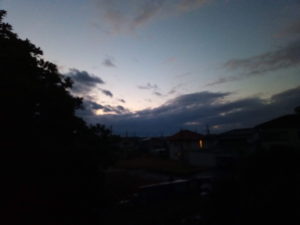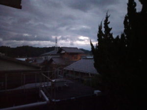 さぁ、それではコーヒーの準備をしながら、物干しに洗濯ものを干しましょう。物干しに干したら、雲が出てきた。まぁ、水切れだけでも有り難いです。