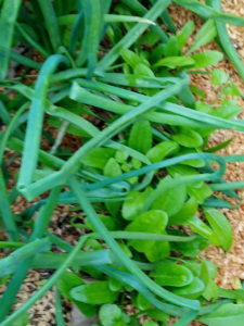 同じ日に蒔いたけれど右に行くに従って生育が良いです。一番右はもう少しで収穫出来そうです。