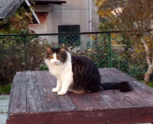 庭仕事をしているとうめが来て応援して呉れました。12時、トットッ…、と静かに階段を上がる音がしてトラ子がヌーッと現れました。ちゅ~るタイムです。物干しで日向ぼっこをしていた福も一緒にちゅ~るタイムですが、うめには大声で知らせましたが、反応がありませんでした。