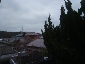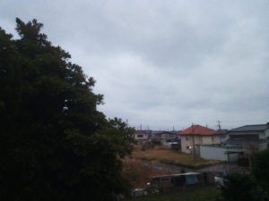 6時41分、明るくなったけれど雲が一杯でした。ポツリ、ポツリと雨が来ています。