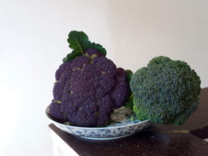 ブロッコリーを3株と紫ブロッコリー一株を頭頂花のみ収穫しました。一番大きな一株はお隣へ、もう一つはSさんに持って行き食べて頂く事にしました。今、緑と紫のブロッコリーを仏様にお供えしてご先祖様に食べて頂いています。
