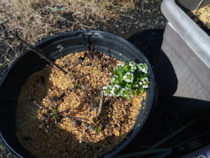 スイートアリッサムを一つ、サルビアストラータの鉢に植えました。広がって呉れるかな。先日ビオラのプランターに移植した霜焼けのネモフィラも5つ中、4つは救われて新しい葉を出し始めました。気温は然程高くはなかったですが、雨のお蔭です。もう一つも多分助かって呉れるんじゃないかなぁ。