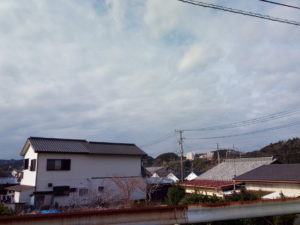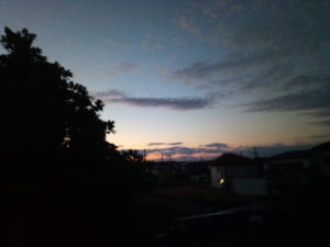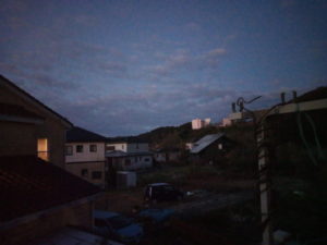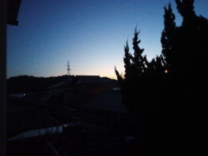 少し明るくなりました。こんな状態です。物干しから見えていた日の出(と言っても海際の山の上に上がって来る太陽が)もう物干しから見えなくなりました。