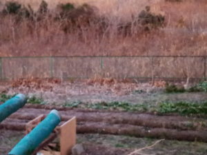 7時14分、ようやく庭に光がやって来ました。草取りをしながら動画を撮りました。