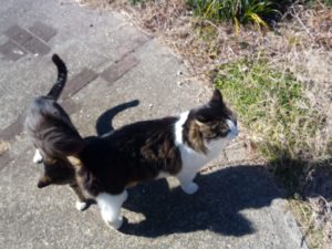 草を取ったり、動画を撮ったり、うめがほぼ付き添い状態でした。『ご褒美にちゅ~る、頂戴ね、オカアシャン!』家で寝ていたトラ子とうめにちゅ~るを上げました。私もお茶を飲んだら買い物に行って来ます。コーヒーと一緒に戴く和菓子とスイートアリッサムを買って来ましょう。