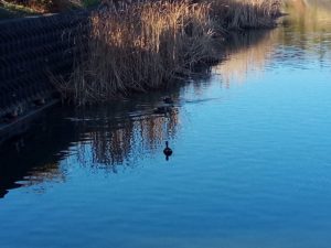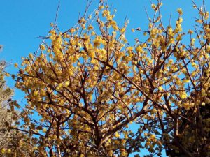 Kさんのお家の蝋梅は満開です。清水川にはカルガモさんが4羽くらい居ました。ヤックスの前の鉄塔には鵜が3羽!