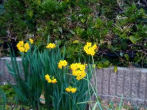 帰って来た時には日が沈んでいましたが、延びた日の、オレンジがかった光の中で数時間前よりもふっくらした蕾たち。