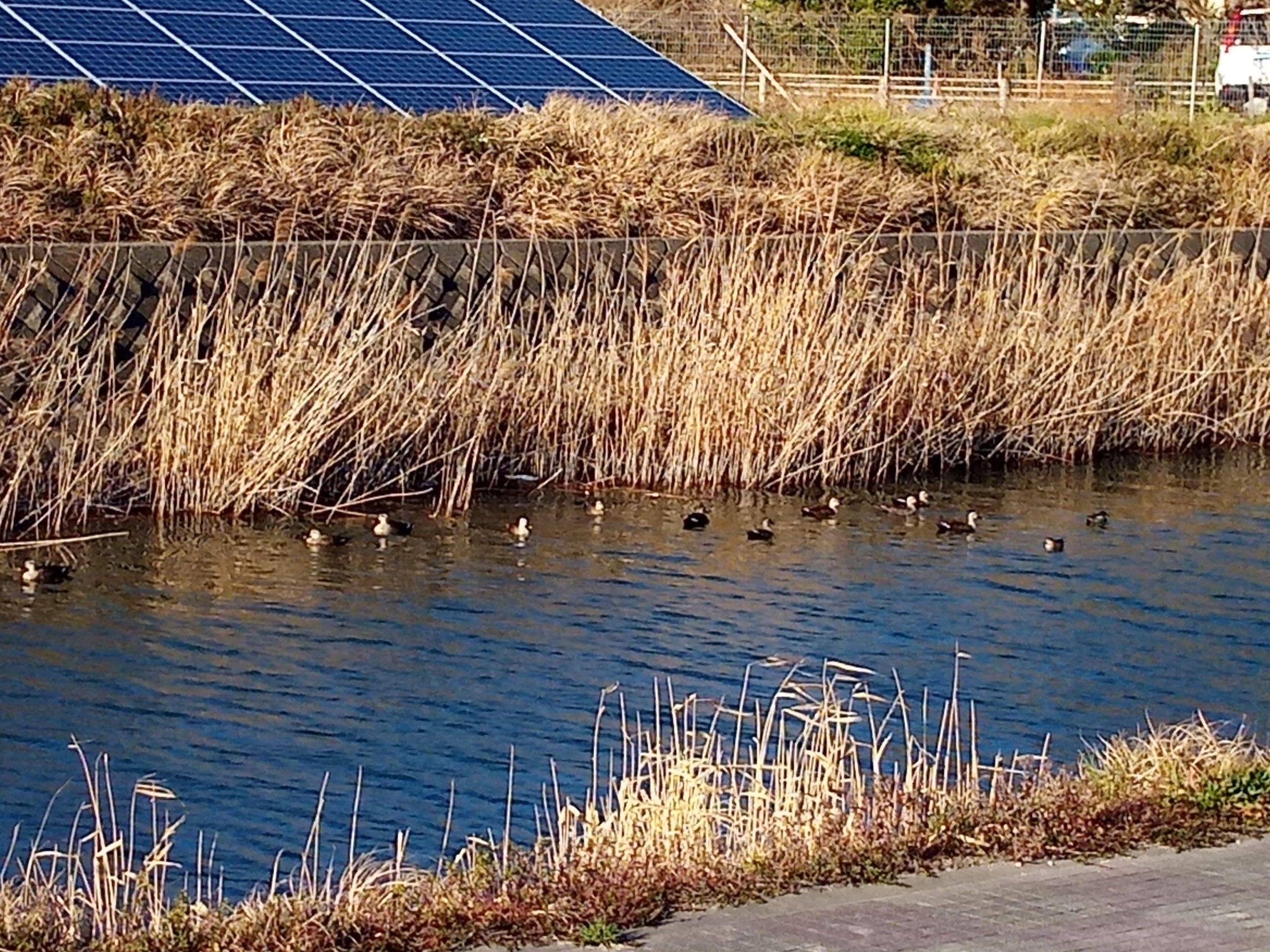 昨日の買い物途中の、清水川のカルガモさん達を写真をトリミングしてみました。