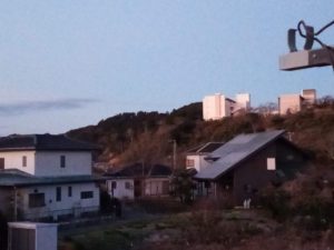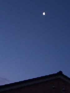南西にはくっきりとした半月が覗き、西南西の家々の屋根は霜で白く、肉眼で見る南南東はこんなでした。