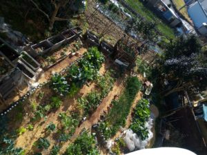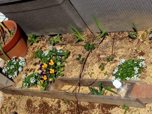 昨日花を植えた苺畝です二階から見るとイエロージャンプアップが一株欲しいですね。赤は沈んでみえます。