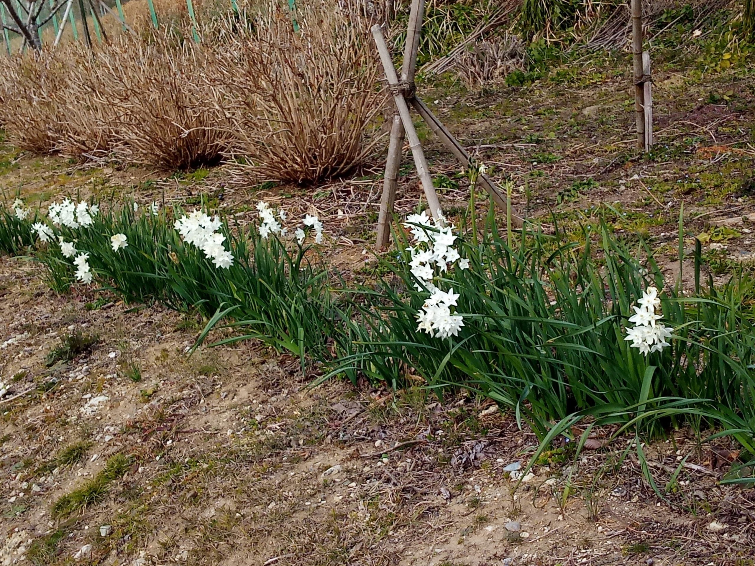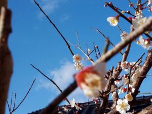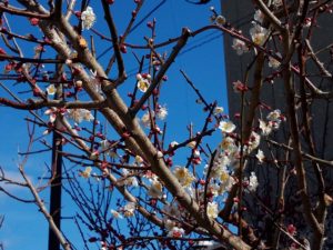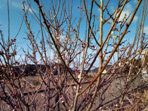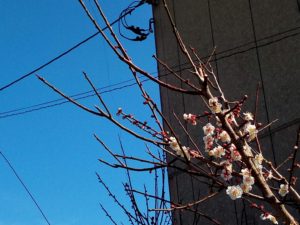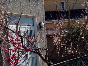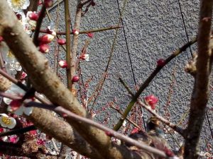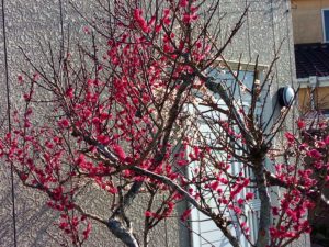 此方は西隣さんのアサツキと梅です。梅は来週辺りがピークですかね。そして我が家の梅です。