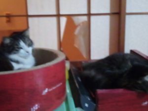 うめのちゅ~るは10時半に済みました。13時過ぎ、うめちゃんはジュレも終了。トラ子も両方終了です。14時半。